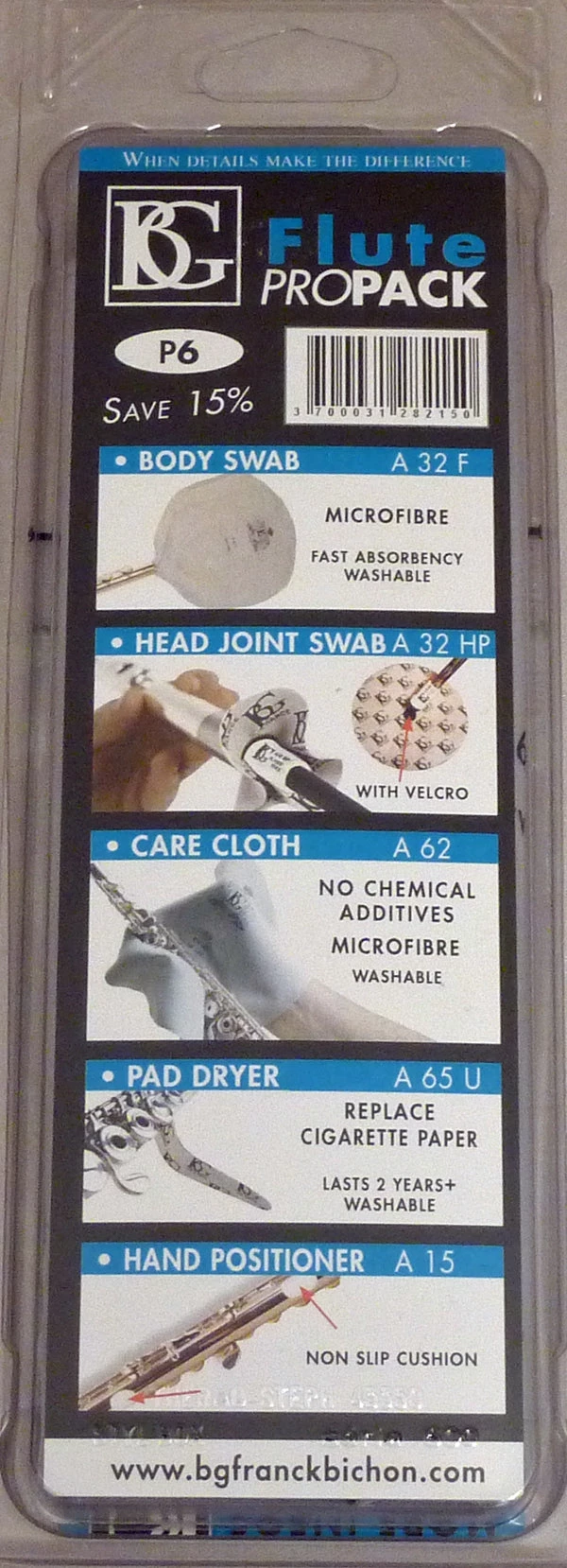 This care kit for your Flute includes Microfiber Body Swab, Microfiber Head flute swab, Care Cloth, Pad Dryer and Hand Positioner. Super convenient and a great bundled value!