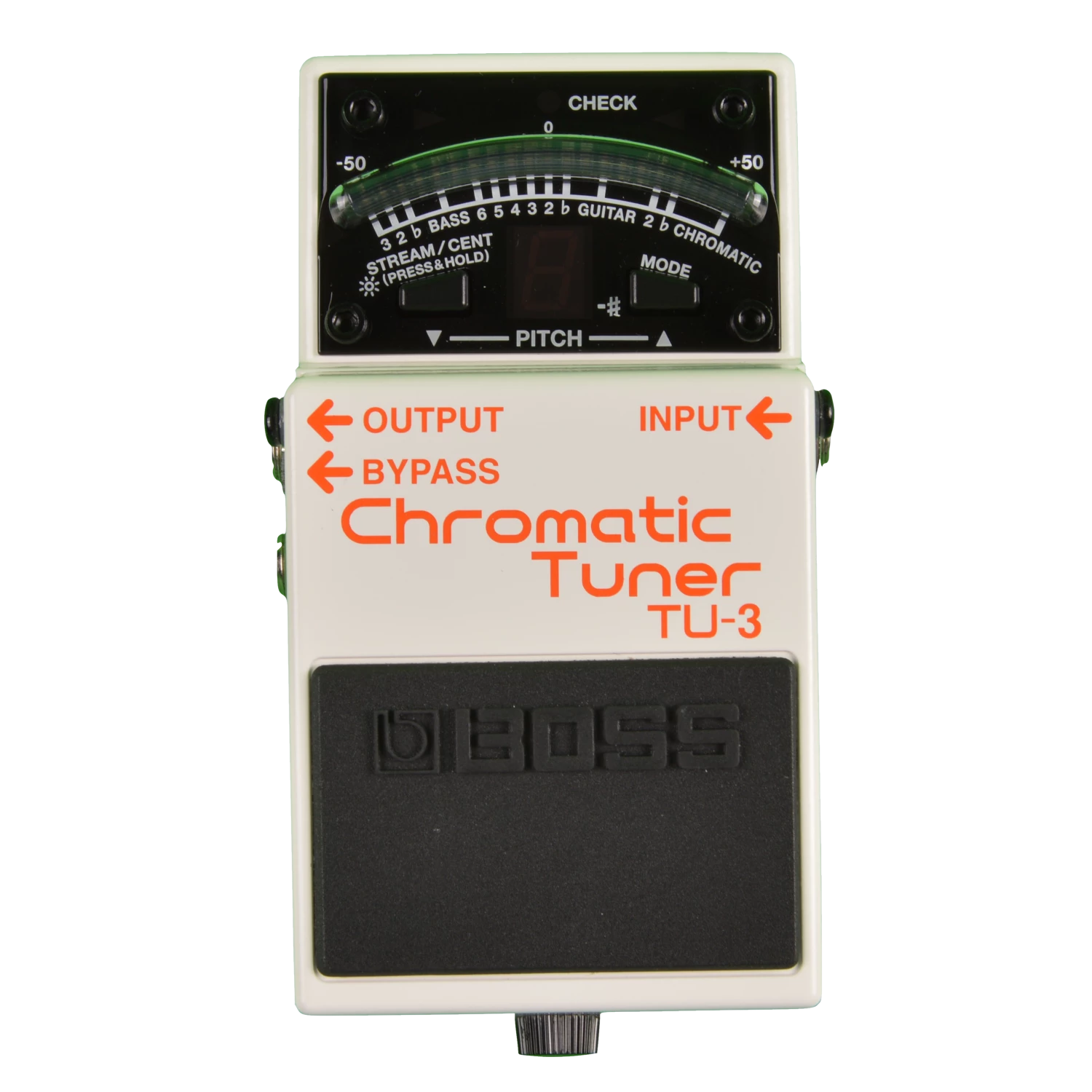 The world’s top-selling stage tuner, the BOSS TU-2, evolves and improves with the debut of the new TU-3. Housed in a tank-tough BOSS stompbox body, the TU-3 features a smooth 21-segment LED meter with a High-Brightness mode that cuts through the harshest outdoor glare. Choose between Chromatic or Guitar/Bass tuning modes, and enjoy visual pinpoint tuning verification with the Accu-Pitch Sign function. The TU-3 incorporates a convenient Note Name Indicator that can display notes of 7-string guitars and 6-string basses, while the Flat-Tuning mode can support up to six half-steps. It’s the new-standard tuner that no guitarist or bass player should be without!