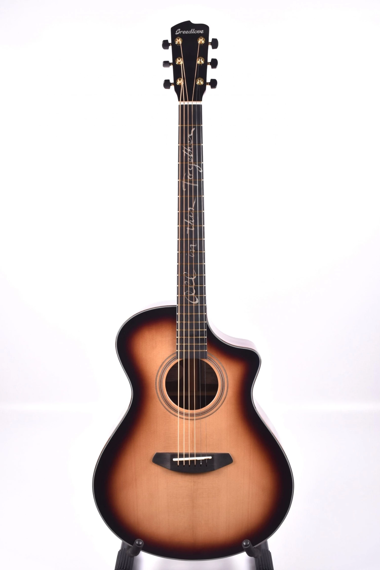 Emblazoned with Bridges’ “All in the Together” motto along the fretboard, and his signature inlaid along the back of the Wave headstock, the Jeff Bridges Amazon Concert Sunburst CE Torrefied European-Granadillo is proof that sustainability sounds great, for both the soul and the ear.