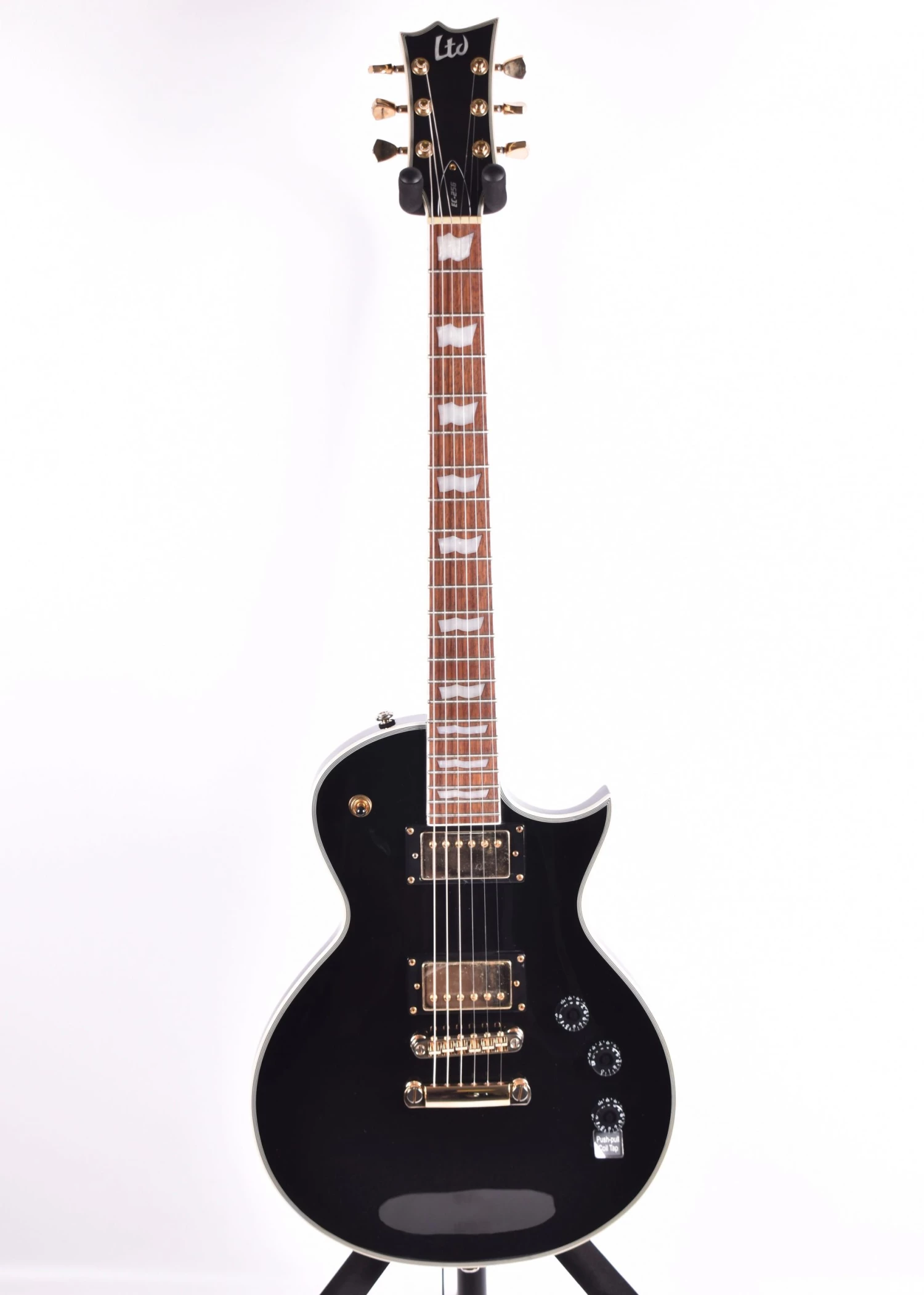 The EC-256FM also features a mahogany body, a comfortable three-piece thin U-shaped mahogany neck, and a roasted jatoba fingerboard with inlays and 22 extra-jumbo frets. This guitar features our acclaimed ESP Designed LH-150 humbucking pickups that offer great tone for all genres of music, and the tone flexibility of coil-splitting controlled by a push-pull switch on the tone knob.