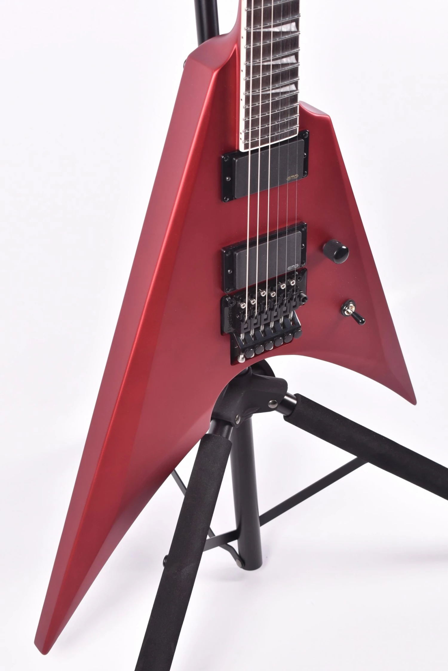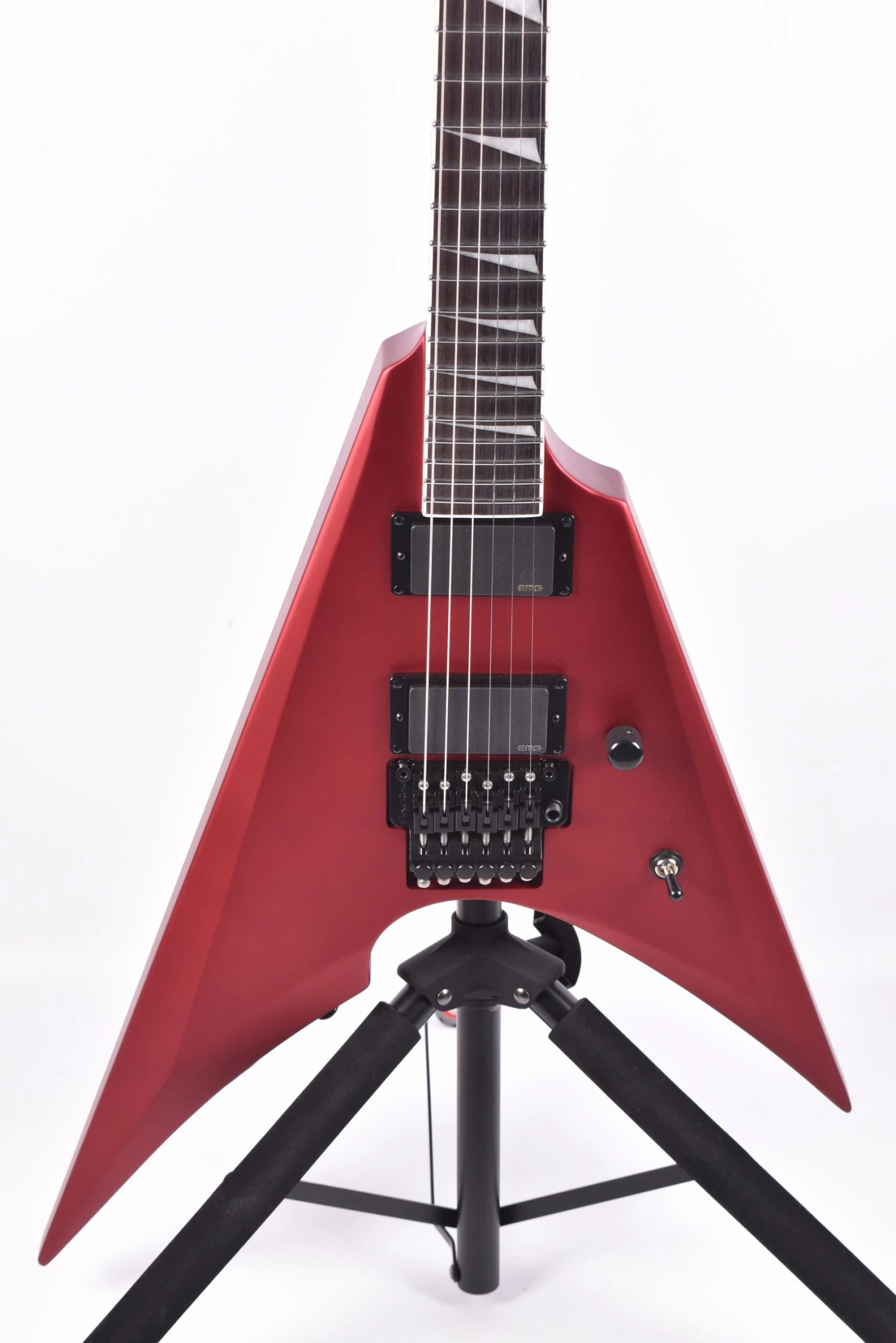 An excellent choice for all genres of metal, hard rock, or any other form of music where you want to stand out from the crowd, the Arrow-1000 offers a neck-thru-body design with mahogany body, 3-piece maple neck, and Macassar ebony fingerboard, and its aggressive vibe is complemented by its set of EMG 85 (neck) and EMG 81 (bridge) pickups. It also offers a Floyd Rose 1000SE bridge with stainless steel screws and precise Grover tuners. The Arrow-1000 is available in Candy Apple Red Satin and Violet Andromeda finishes.