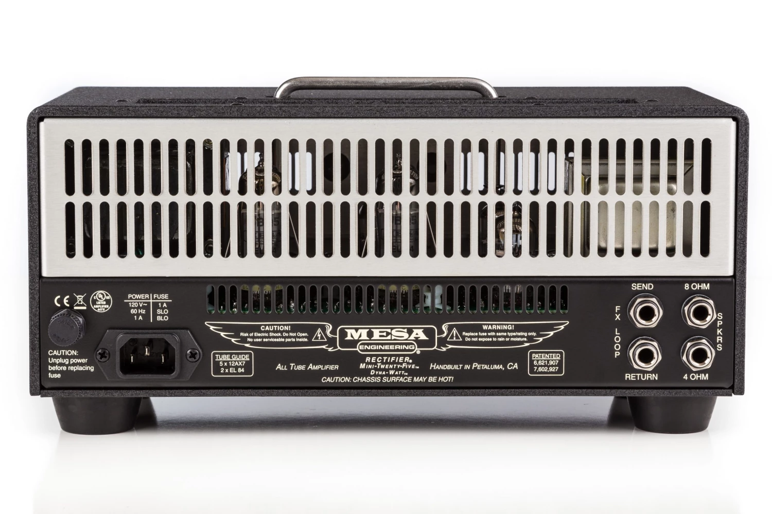 The 25 Watt setting offers a more bold attack, tighter tracking low end, increased definition and all out headroom. This setting works great with all the sounds and certainly showcases the mightiness in the Mini Rectifier, shocking unsuspecting players and bystanders alike with power and sonic size.