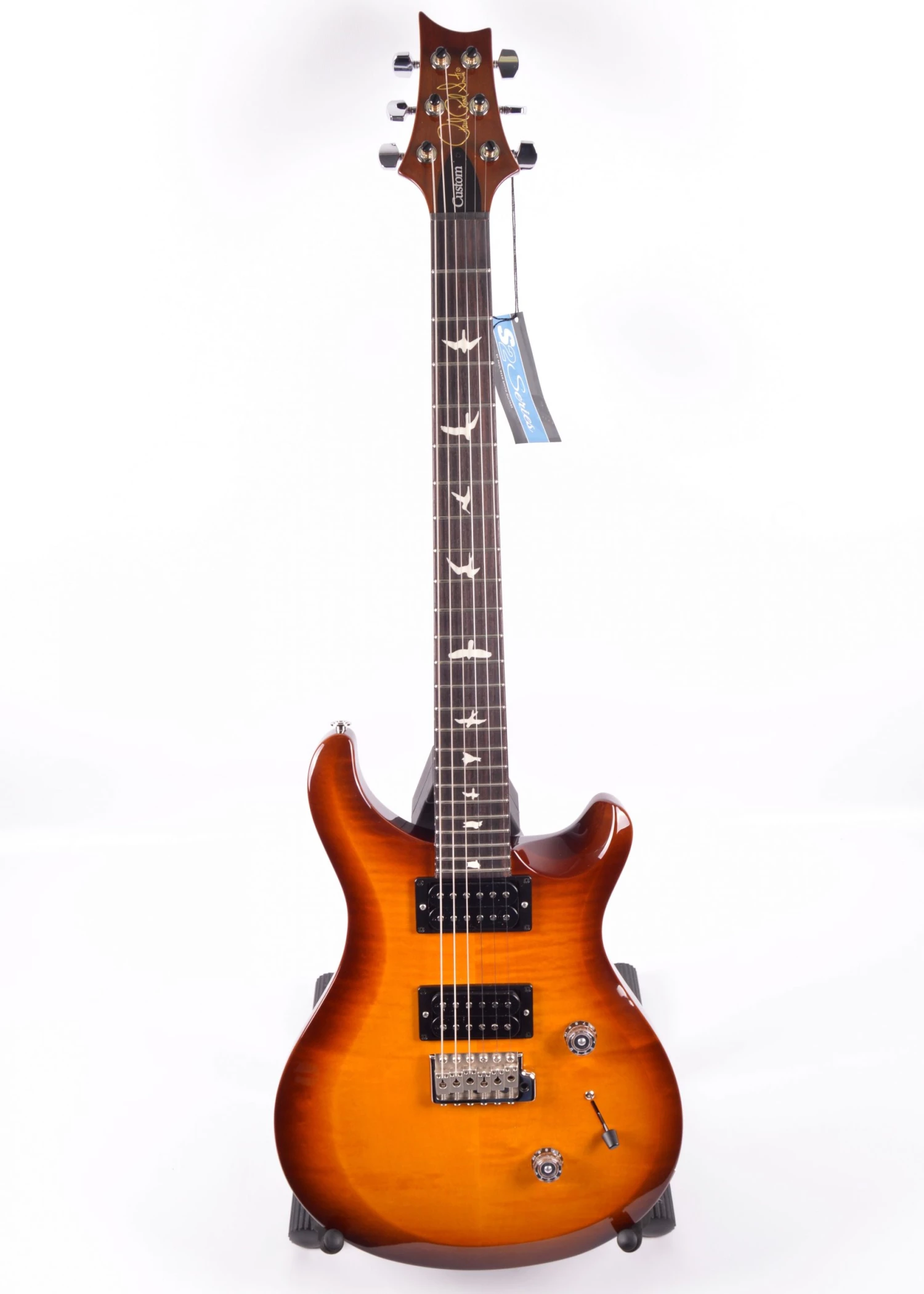The S2 Custom 24 takes the original PRS guitar, the Custom 24, and re-imagines it with stripped-down features and a new aesthetic. Retaining the classic maple top/mahogany back combination with our classic body shape and a asymmetrical beveled top, this guitar is resonant with a funky familiarity. Its versatility comes from its 85/15 “S” pickups, push pull tone knob, and 3-way blade switch. Familiar for PRS players of old, and a fresh take for players of all types.