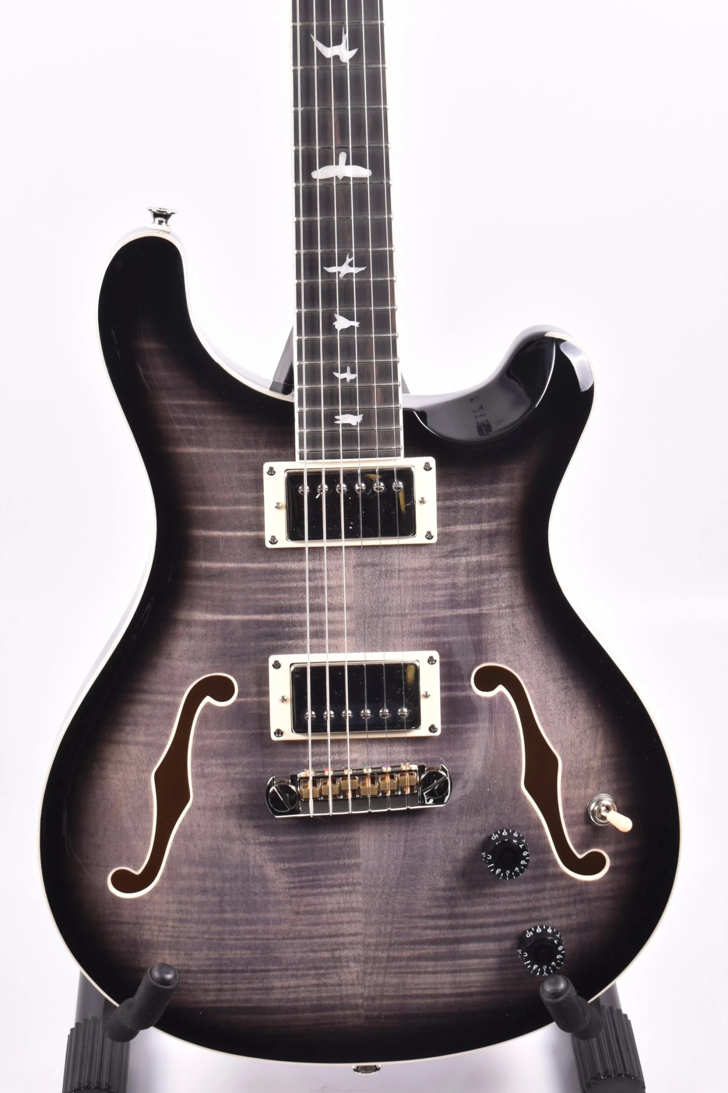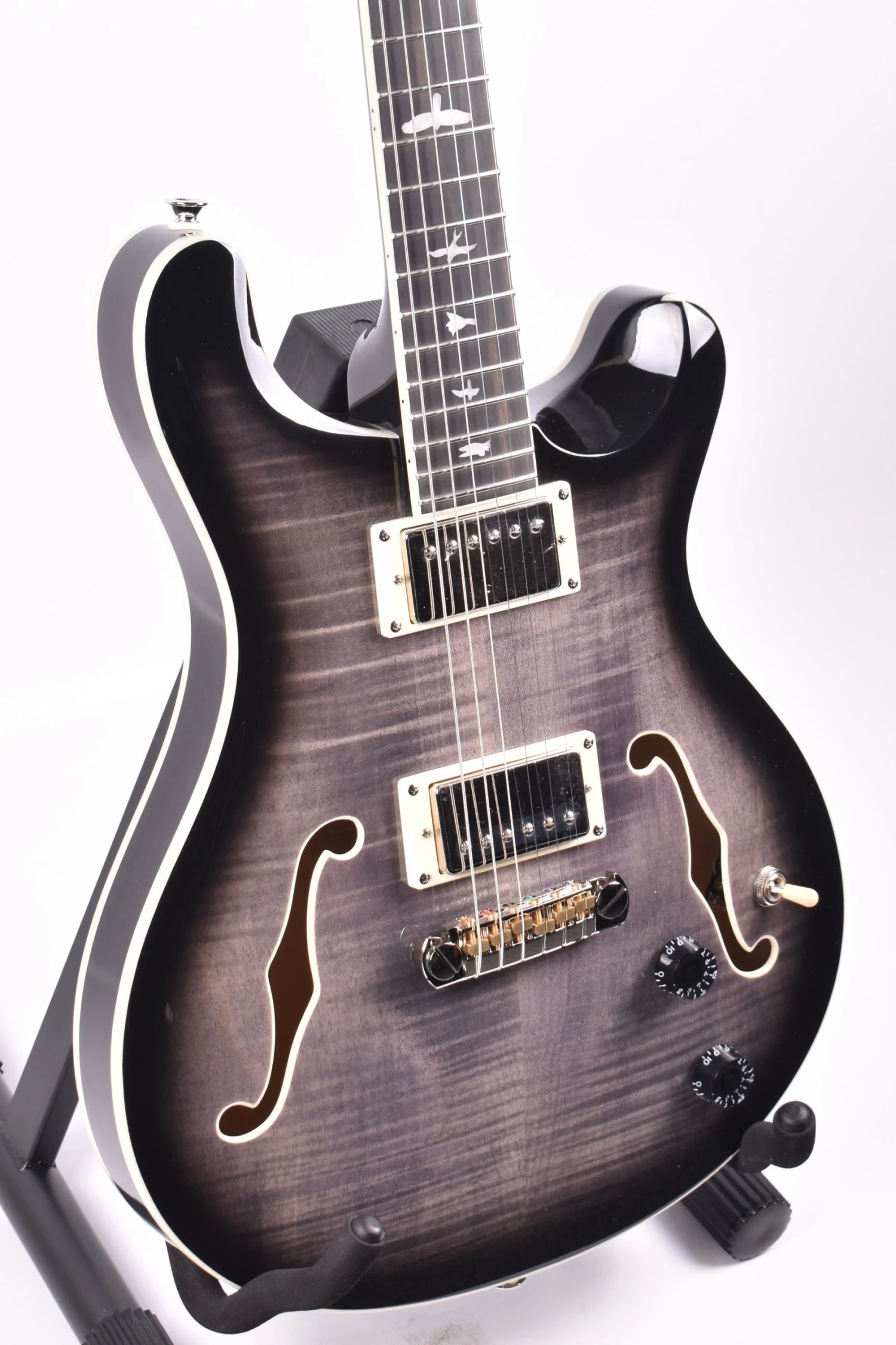 Designed to look as good as it sounds, the SE Hollowbody II also features a figured maple top and back and mahogany sides as well as a mahogany neck (set-neck construction) with PRS trademark bird inlays. Both hollowbody and solidbody players will feel at home with the SE Hollowbody II.