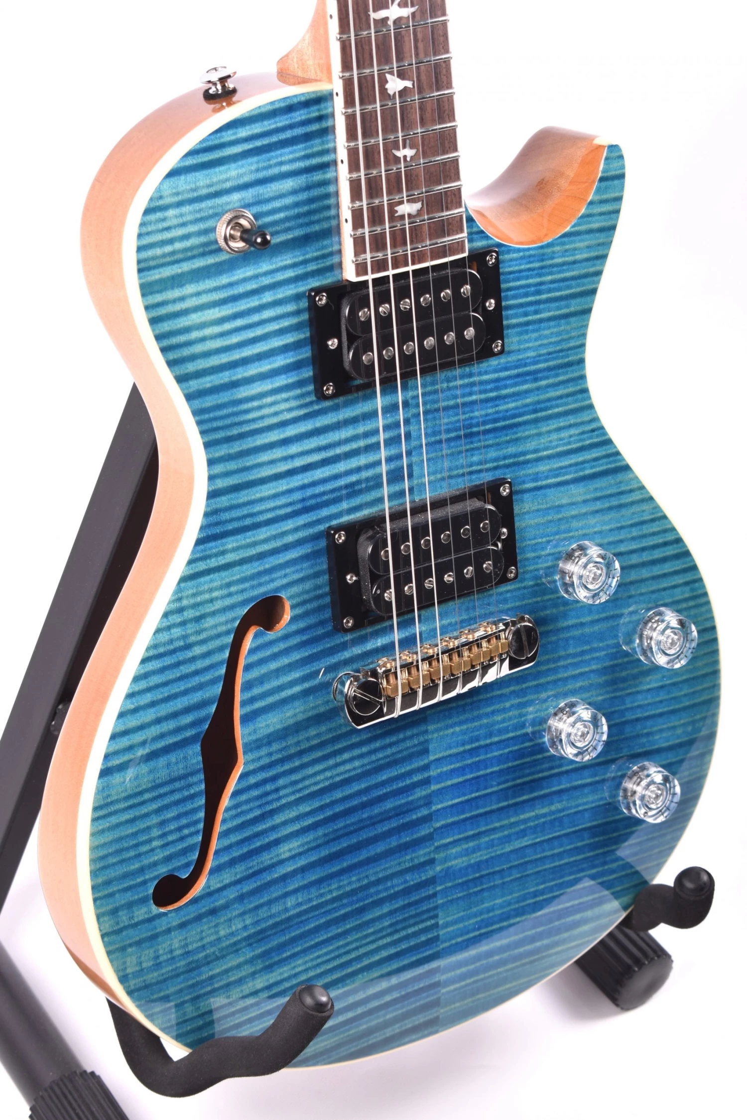The SE Zach Myers is packed with features that will satisfy even the most demanding musicians. Featuring a chambered mahogany body with maple cap, flame maple veneer, and single f-hole, the SE Zach Myers provides smooth mid-range tones with a natural, resonant internal reverb. The resonance of the semi-hollow body paired with the smooth feel of the satin finish neck will make an immediate impression in your hands.